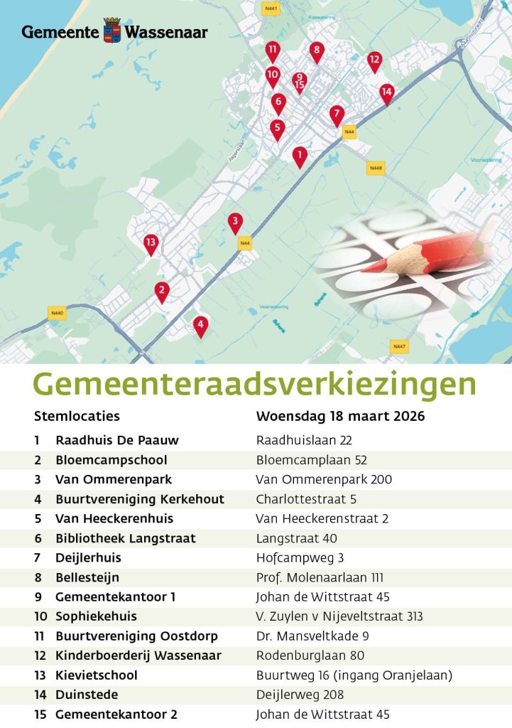 De stemlokalen zijn geopend van ’s ochtends 07.30 uur tot ’s avonds 21.00 uur. Op de volgende locaties in Wassenaar kunt u stemmen.
